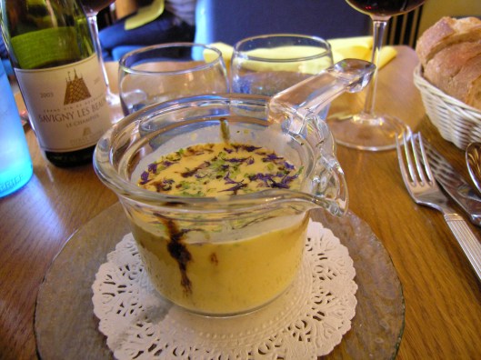 Finding myself nodding madly in agreement at the “ick” factor of making true aspic à la Julie and Julia, dismissing it as a deal killer in any attempt of my own at taking ANY of my cookbooks and tackling them cover to cover, I whinge. But then, there is the memory of bistro lunches of jambon persille, miraculous Potage au potiron and Époisses in Beaune; more incredible soups in Gordes… and that is why I added serious French cookbooks to my library upon returning home. But am afraid to crack them open.