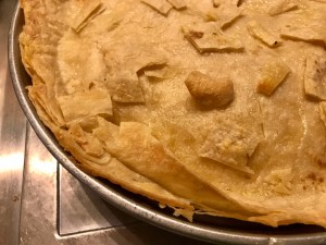 By substituting one ingredient, you can work within the limitations of cooking while traveling or when you just do not have a fresh or thawed package of filo on hand. This may sidestep the fear-of-filo factor for some 😉 This method is quick, easy to do and perfectly suited for spur-of-the-moment entertaining for a small or unexpected group.