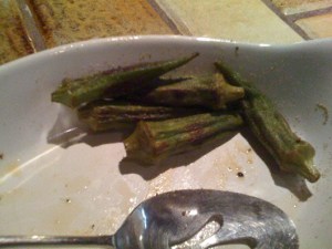When I posted a link to two recipes on Facebook a few days back, I could easily have predicted the reaction. Or rather maybe no particular reaction to Mark Bittman’s take on lightening gumbo. And that turned out to be a particularly delish celebration of the Saints win. The other recipe is one I found for a fat-free take on okra.