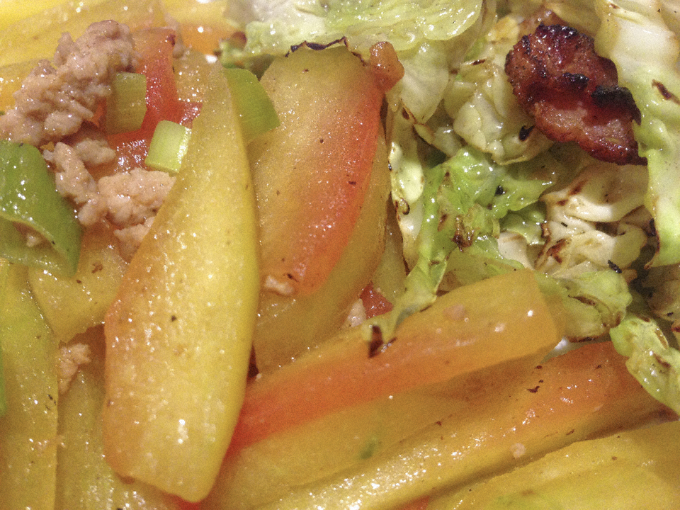 I loved the hint of colour and the fresh flavour, almost like a smooth cucumber, another summer favourite of mine. Removing the outer green skin was surprisingly easy to peel, and prep took only 10-15 minutes to get everything in place not only for this recipe, but also to quickly follow on in the same wok with a cabbage and bacon stir-fry (page 229), a quick and satisfying adaptation from Tane Chan’s Albuquerque childhood that Grace included in Stir-Frying to the Sky’s Edge.