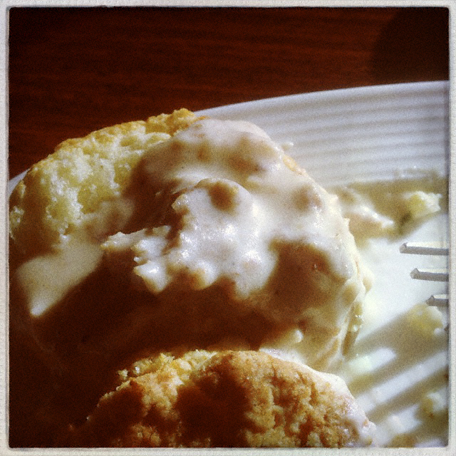 Lingering over buttermilk milk biscuits and steaming freshly made sausage gravy.